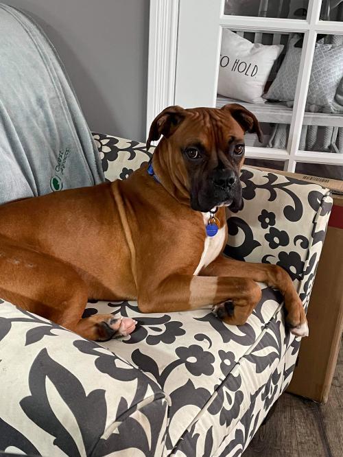- Age, Size, Sex, Breed: Adult, Large, Male, Boxer Mixed Breed Mix